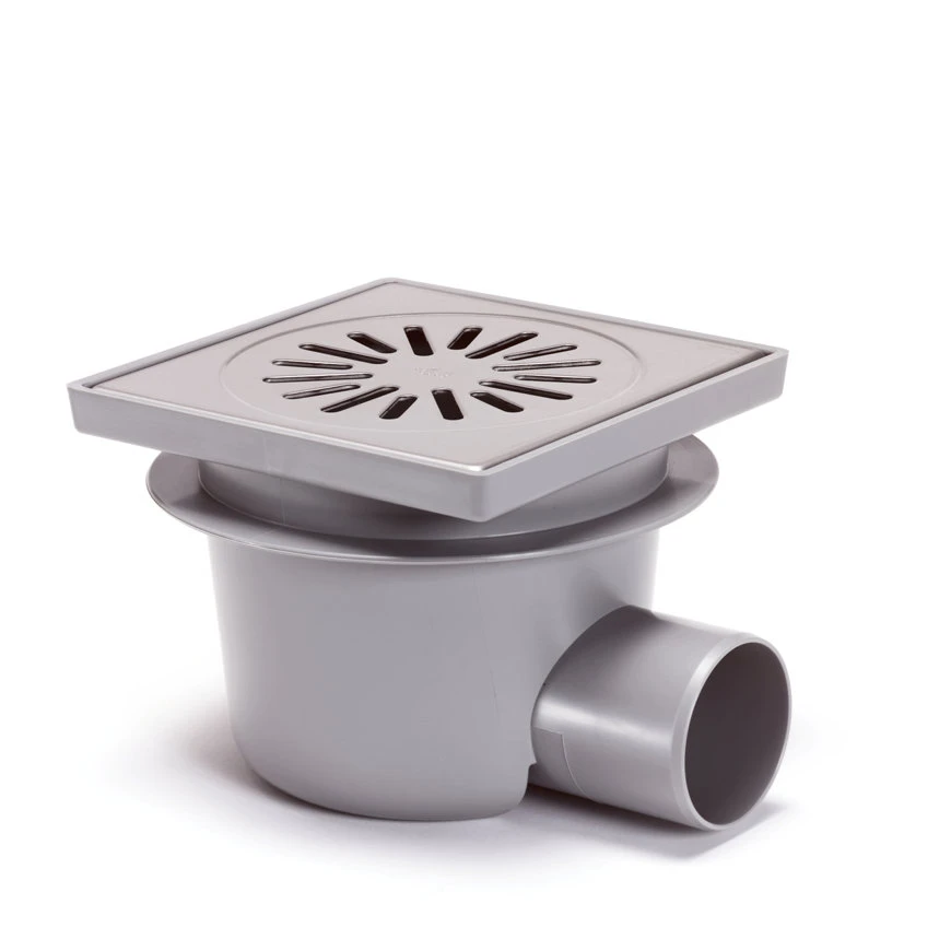 Afvoerput, abs, met rvs rooster, niet in hoogte verstelbaar, 150 x 150 mm, zijuitlaat