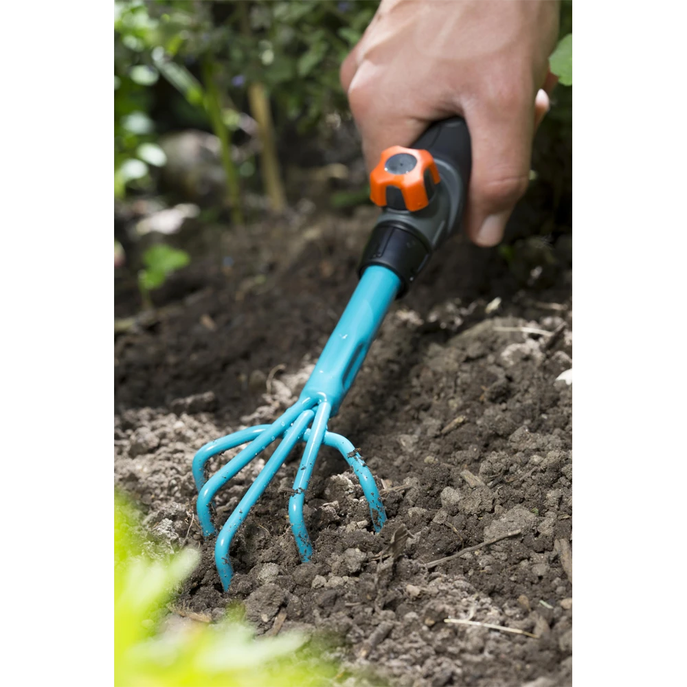 De GARDENA combisystem klauw is het ideale hulpmiddel voor het los maken van de grond. De ergonomische handgreep met zacht component past perfect in de hand. Gebruik een combisystem steel om langdurig te werken zonder te hoeven bukken. Het klauwtje is 7 cm breed en vervaardigd uit hoogwaardig staal met Duroplast coating.
