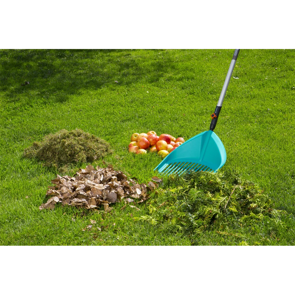 De combisystem-multihark van GARDENA is een veelzijdige tool die gedurende het tuinseizoen kan worden gebruikt. Met dit multifunctionele gereedschap kunt u scheppen, harken en zelfs zeven!De Multihark overtuigt met verschillende toepassingsmogelijken. U kunt hiermee verschillende materialen efficiënt bijeen harken en oppakken. Of het nu gaat om bladeren of snoeiafval, de Multihark is een nuttige hulp in uw tuin. Veeg bladeren of grasresten bij elkaar en verzamel het met een snelle beweging van de hark. De Multihark is ook ideaal voor het oprapen van afgevallen fruit. Maar dat is nog niet alles: dankzij de zeeffunctie kan de aarde worden gezeefd en blijven bijv. kleine takjes achter op de hark, handig bij het planten of verplanten.De zeer praktische combisystem-verbinding betekent dat u de Multihark eenvoudig kunt combineren met verschillende stelen van de combisystem-familie. Kies welke lengte het meest geschikt is voor u en maak zo een hark op maat. Een ​​houten, aluminium of telescopische steel – de keuze is aan u. Bukken om de verzamelde bladeren op te pakken is verleden tijd, met de multihark werkt u comfortabel vanuit een staande positie en schept u de bladeren zo in de gft container.De Multihark is altijd klaar voor gebruik en dankzij het compacte formaat gemakkelijk op te bergen. Het robuuste materiaal met tanden van hoogwaardig en stabiel kunststof zorgt ervoor dat de multihark robuust en duurzaam is. GARDENA onderstreept dit ook met een fabrieksgarantie van 25 jaar.