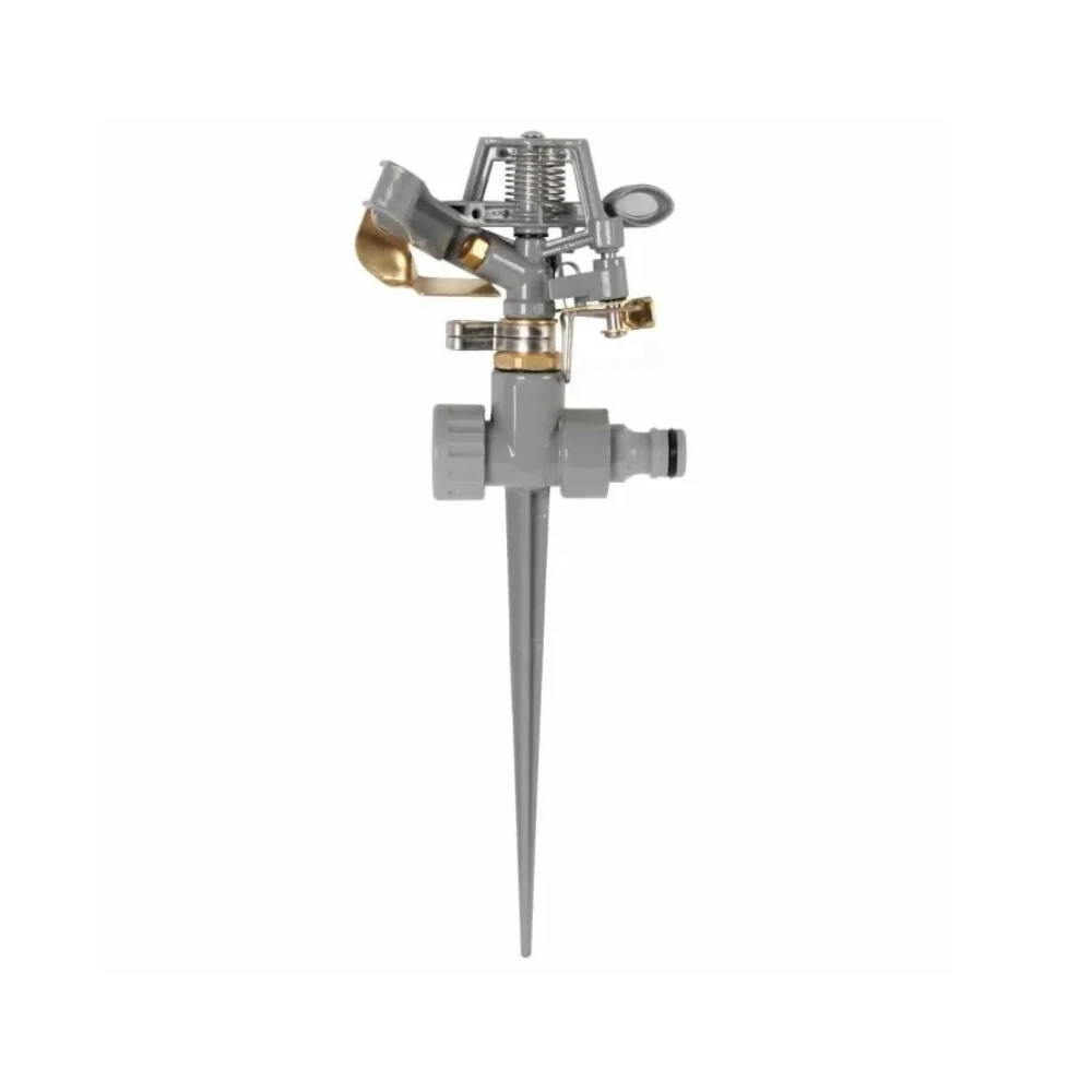 De sproeier is gemonteerd op een stevig zinken piket, waardoor u hem eenvoudig in de grond kunt steken op de gewenste locatie. Het zinken piket zorgt voor stabiliteit en duurzaamheid, zelfs in zachte of ongelijke bodems. Hierdoor blijft de sproeier stevig staan en blijft hij op zijn plaats tijdens het besproeien.